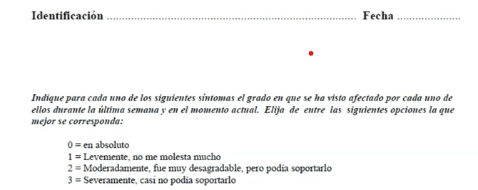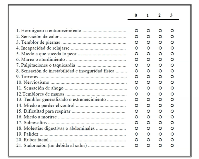- Inventario de Ansiedad de Beck: nos ayuda a entender cómo de intensa es la ansiedad de la persona.