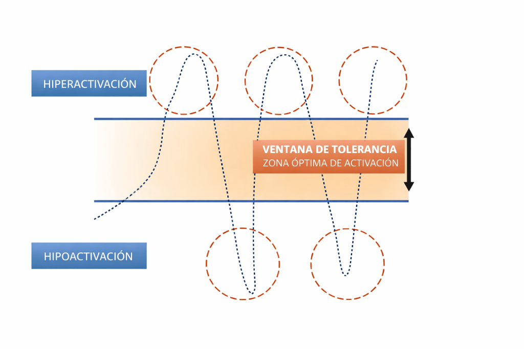 Cuando una emoción es demasiado intensa o el sistema nervioso se siente amenazado, podemos salir de esta ventana. Esto puede ocurrir por estrés, ansiedad, recuerdos dolorosos o situaciones que nos superan.